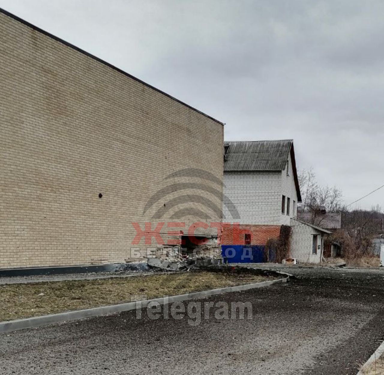 Также сообщается, что есть двое раненых. Повреждены магазин и корпус предприятия.