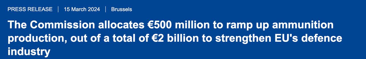 14.40 Еврокомиссия выделяет еще 500 млн евро на наращивание европейского производства боеприпасов, сообщается на сайте ведомства.