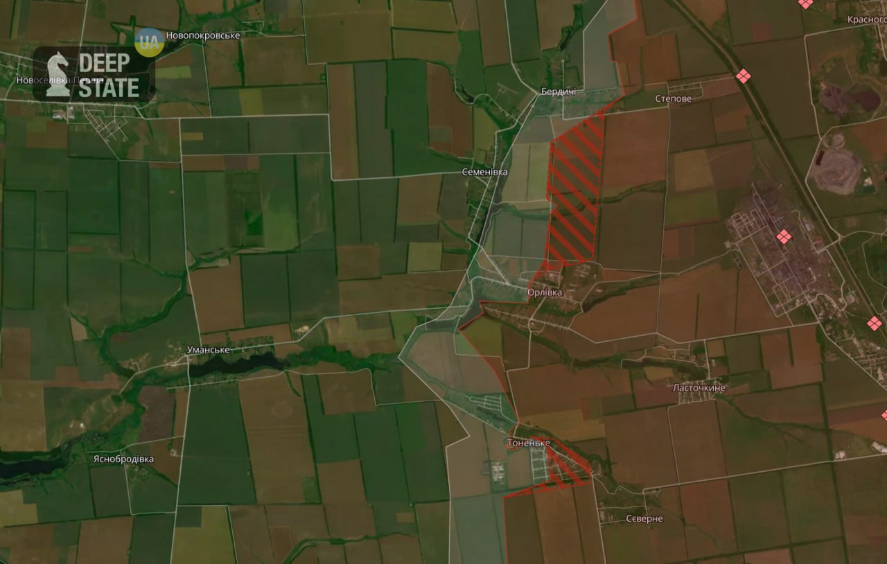 Об этом сообщает украинский военный паблик Deep State, публикуя обновленную карту.