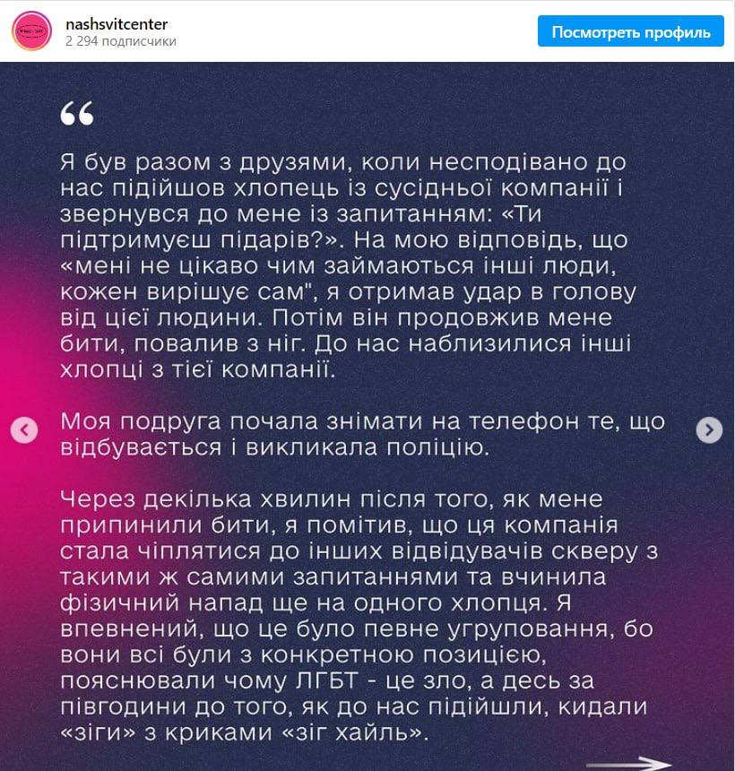 В Киеве группа мужчин избила парня из-за его толерантного отношения к ЛГБТ. Парень не говорил, что поддерживает однополые отношения, а лишь объяснил, что ему "безразлично, чем занимаются другие люди".
