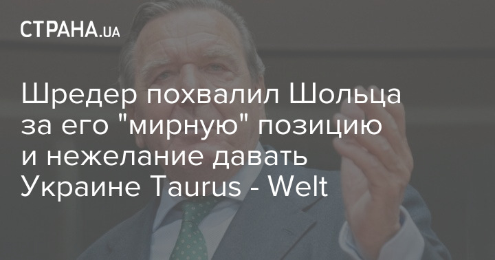 Бывший канцлер ФРГ Герхард Шредер хвалит Олафа Шольца за его "мирную" позицию и нежелание передавать Украине дальнобойные ракеты Taurus.