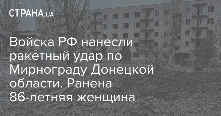Сегодня ночью российские войска нанесли ракетный удар по Мирнограду Донецкой области. Ранена женщина.