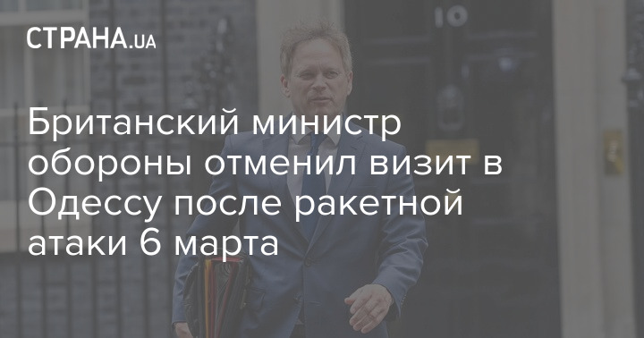 Министр обороны Великобритании Грант Шаппс отменил свой визит в Одессу после ракетного удара по городу 6 марта.