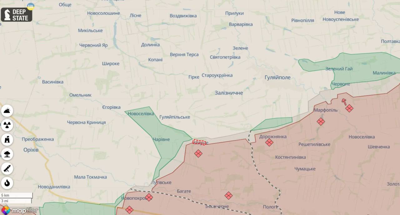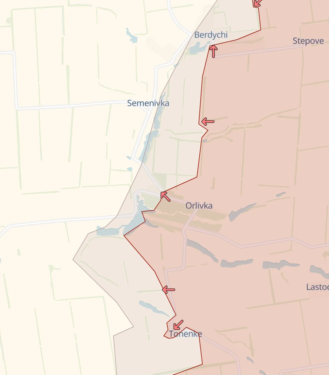 В пятницу военный телеграм-канал Deep State сообщал, что российская армия продвинулась в Тоненьком и севернее Орловки. В субботу продвижение было в Бердычах и Орловке.