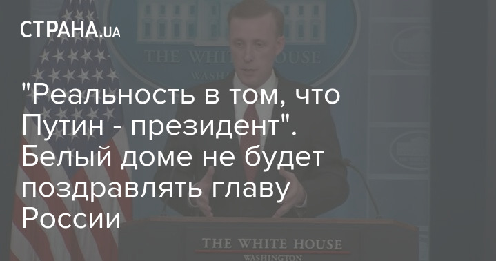 "Реальность в том, что Путин - президент России, США будут действовать, исходя из этого", - заявил советник Белого дома по нацбезопасности Джейк Салливан на брифинге.
