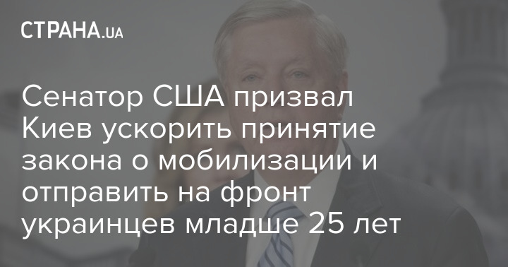 Приехавший в Киев американский сенатор Линдси Грэм призвал Украину отправить молодежь младше 25 лет на фронт и побыстрее принять закон о мобилизации.