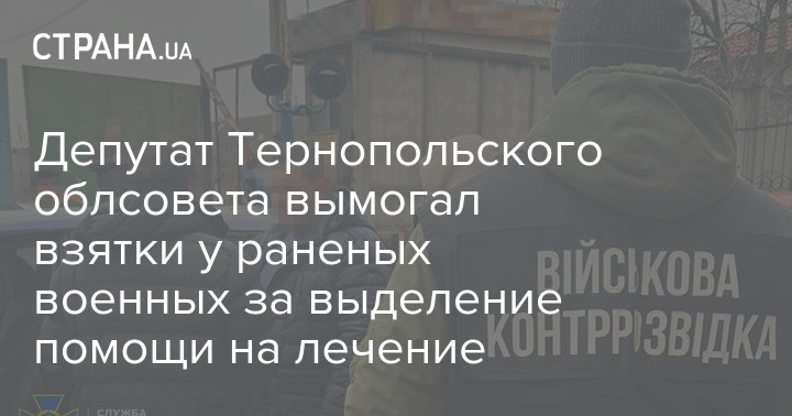 Служба безопасности Украины (СБУ) и Национальное антикоррупционное бюро (НАБУ) разоблачили на коррупции депутата Тернопольского облсовета Олега Щиголя, который по совместительству является председателем постоянной комиссии по бюджету. По данным следствия, депутат требовал откат за выделение материальной помощи для раненых воинов ВСУ.