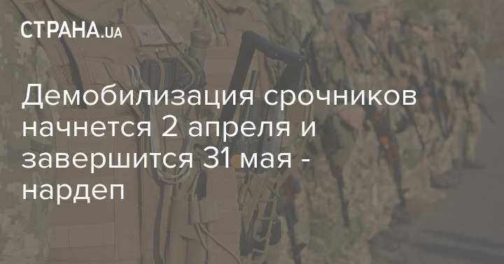 "Демобилизация срочников согласно утвержденным графикам в Вооруженных Силах и Государственной специальной службе транспорта начнется 2 апреля и завершится 31 мая. То есть в разных частях демобилизация срочников состоится в один из дней в этом промежутке", - заявил нардеп.