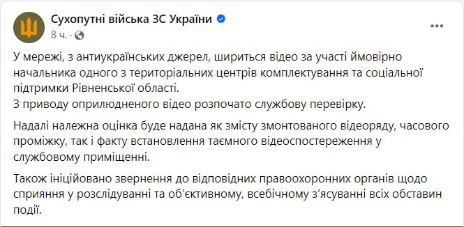В Ровно проводят служебную проверку начальника ТЦК из-за опубликованного в сети видео, на котором он на рабочем месте целуется с коллегами.