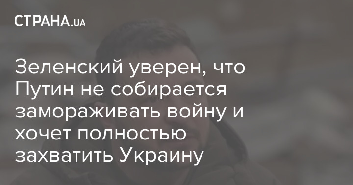 Зеленский уверен, что Путин не собирается замораживать войну и хочет полностью захватить Украину