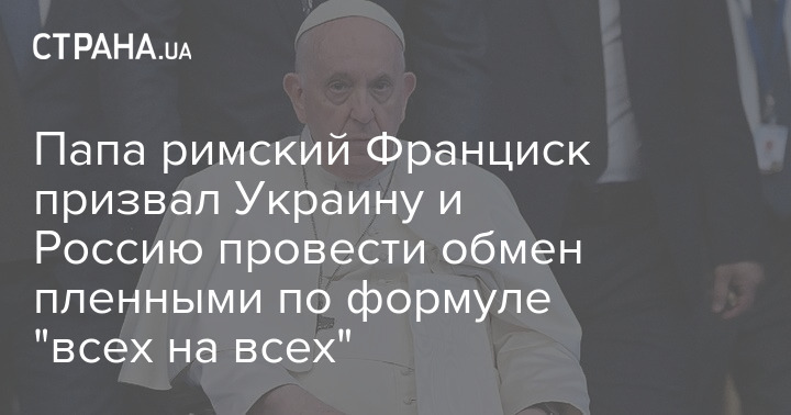 Папа римский Франциск призвал Украину и Россию провести обмен пленными по формуле "всех на всех"