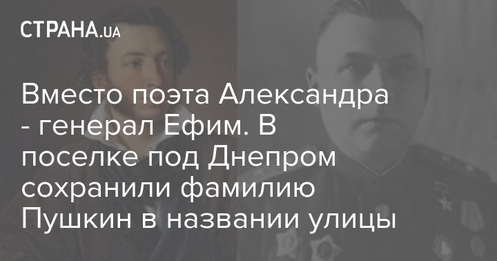 В поселке Межевая Днепропетровской области улицу, названную в честь русского поэта Александра Пушкина, по требованию законодательства переименовали, но назвали в честь генерала Красной армии Ефима Пушкина, который командовал войсками, освобождавшими населенный пункт.