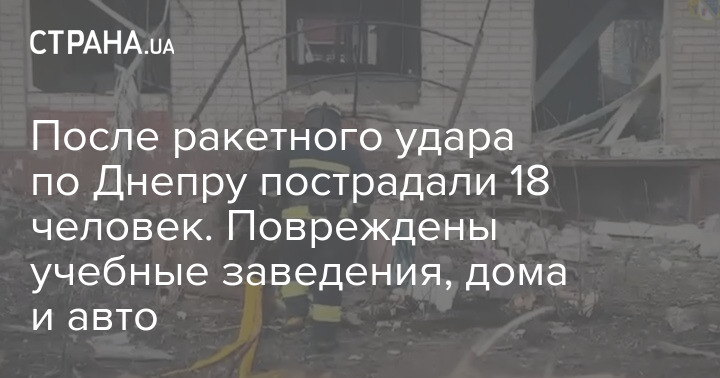 После ракетного удара по Днепру пострадали 18 человек. Повреждены учебные заведения, дома и авто