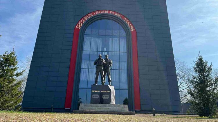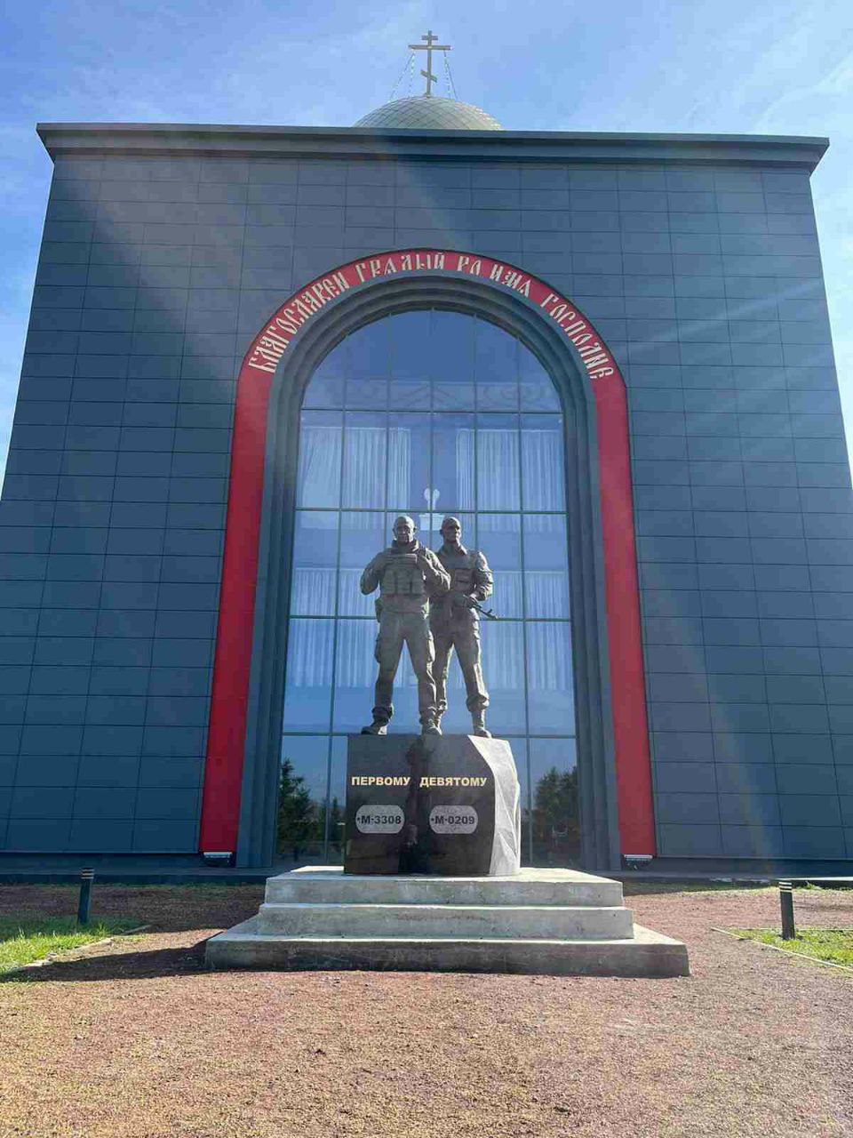 Монумент появился на закрытой территории около мемориальной часовни, построенной в память о "вагнеровцах". Он представляет собой постамент, на котором стоят в полный рост Пригожин с рацией и Уткин с автоматом. На постаменте написаны позывные руководителей ЧВК: Первый (Пригожина) и Девятый (Уткина).