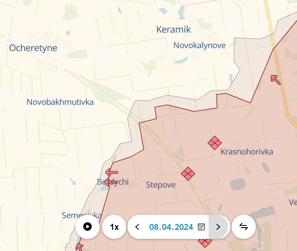 Паблики РФ пишут, что захватили позиции в лесополосе на расстоянии менее километра от Новокалиново, отбив контратаки ВСУ. Американский Институт изучения войны подтверждает рывок российских войск к селу, но пишет, что контратака украинских сил имела некоторый успех.