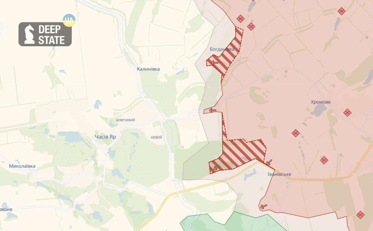 Армия РФ снова существенно продвинулась в направлении Часова Яра на Бахмутском направлении, сообщает украинский ресурс Deep State. А именно - в Богдановке и со стороны Ивановского.