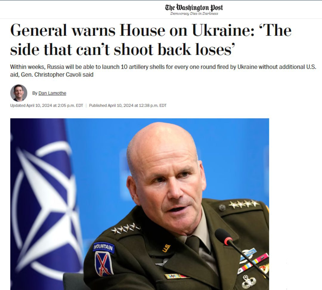 21.42 Через несколько недель Россия будет опережать Украину в артиллерии 10 к 1, заявил командующий силами НАТО в Европе Кристофер Каволи.