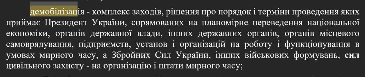 Осталось только положение о том, что демобилизация проводится по указу президента Украины, но когда, не сообщается.