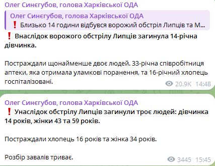 В среду, 10 апреля, в Харьковской области в результате вражеского обстрела Липцев погибли три человека.