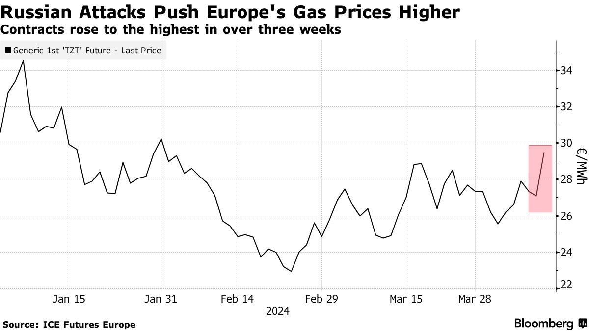 Российские удары по украинским газохранилищам приводят к росту цен в Европе.