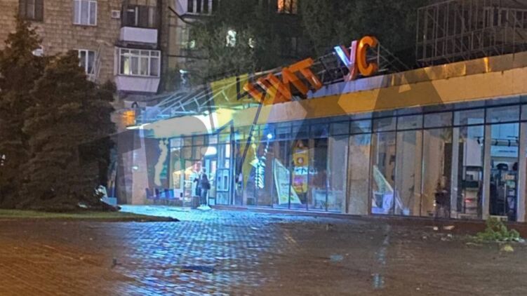 В Днепре деревья повалило на автомобили, в Запорожье ветер покорёжил вывеску магазина.
