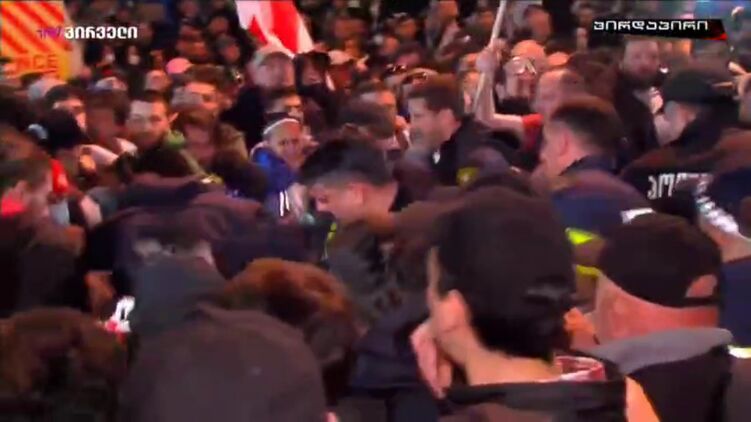 После обсуждения закона об иноагентах в Грузии начались стычки протестующих с полицией. Видео