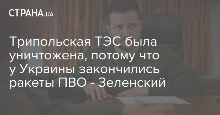 Трипольская ТЭС была уничтожена, потому что у Украины закончились ракеты ПВО - Зеленский