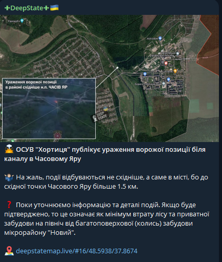 Deep State заявил о продвижении военных РФ в Часов Яр, но потом опроверг