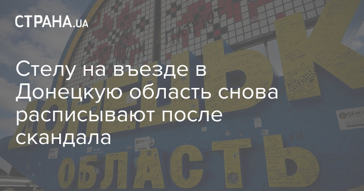 Стелу на въезде в Донецкую область снова расписывают после скандала