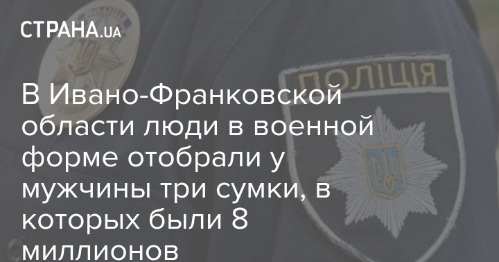 "Происшествие случилось 17 апреля. Неподалеку от посёлка Фрага Ивано-Франковской области возле блокпоста, который не работает, был найден с наручниками на руках житель посёлка Студенка Калушского района. Мужчина сообщил, что его автомобиль остановили трое неизвестных, один был в форме полицейского, двое - в военной форме. Под видом осмотра автомобиля они вытянули мужчину из машины, надели на него наручники и забрали три сумки с деньгами. Позже правоохранители разыскали двух преступников, ими оказались военнослужащие", - сказал источник.