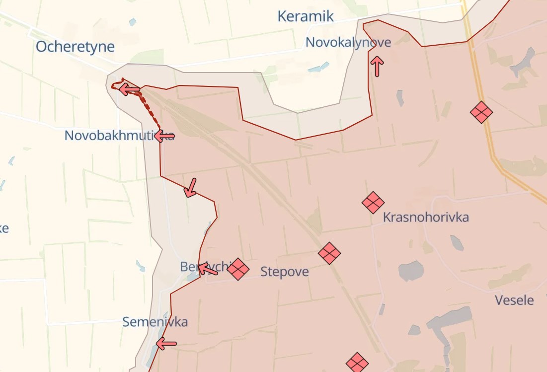На Авдеевском направлении силы РФ продвинулись в Новокалиново, пишет телеграм-канал Deep State. Также было продвижение в Очеретино - ключевом пункте обороны ВСУ на данном направлении.
