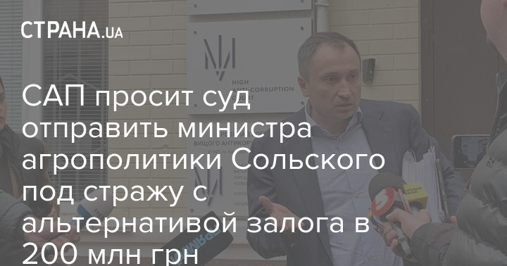 Специализированная антикоррупционная прокуратура просит суд отправить министра агрополитики Николая Сольского под стражу с альтернативой залога в 200 млн грн.