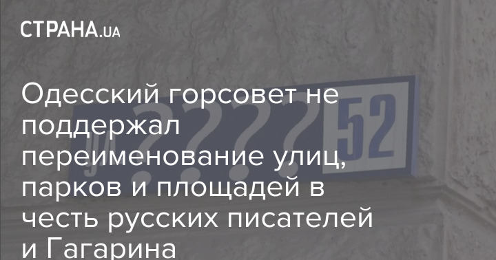 Депутаты Одесского горсовета не поддержали переименование улиц в честь русского поэта Василия Жуковского, писателя Ивана Бунина, проспекта Юрия Гагарина и площади Льва Толстого. Однако часть улиц все-таки переименовали.