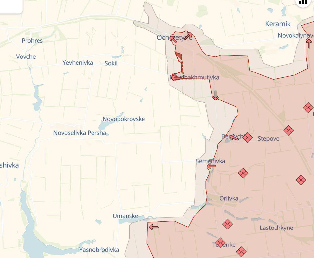 Что же до Очеретино, то по карте DeepState частично он уже захвачен, а частично находится в серой зоне.