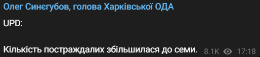 Об этом сообщает глава Харьковская ОВА Олег Синегубов.