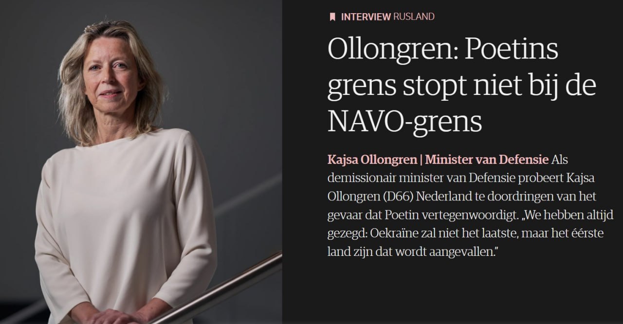 "И если Украина каждый день требует усиления противовоздушной обороны, это, конечно, также приглашение русским продолжить свои атаки. Реалистичная перспектива такова, что Украина в конечном итоге может не победить Россию", - сказала Оллонгрен в интервью NRC.