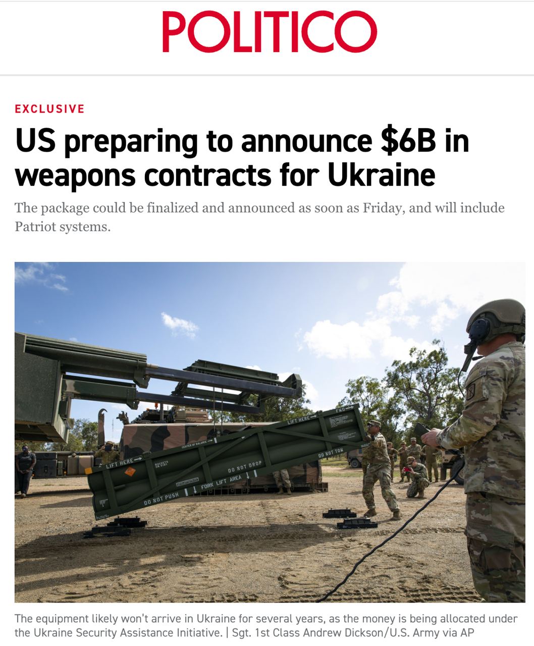 Когда он будет получен, то станет одной из крупнейших американских поставок, которая войдет в общий пакет помощи на 61 млрд, утвержденный накануне Конгрессом.