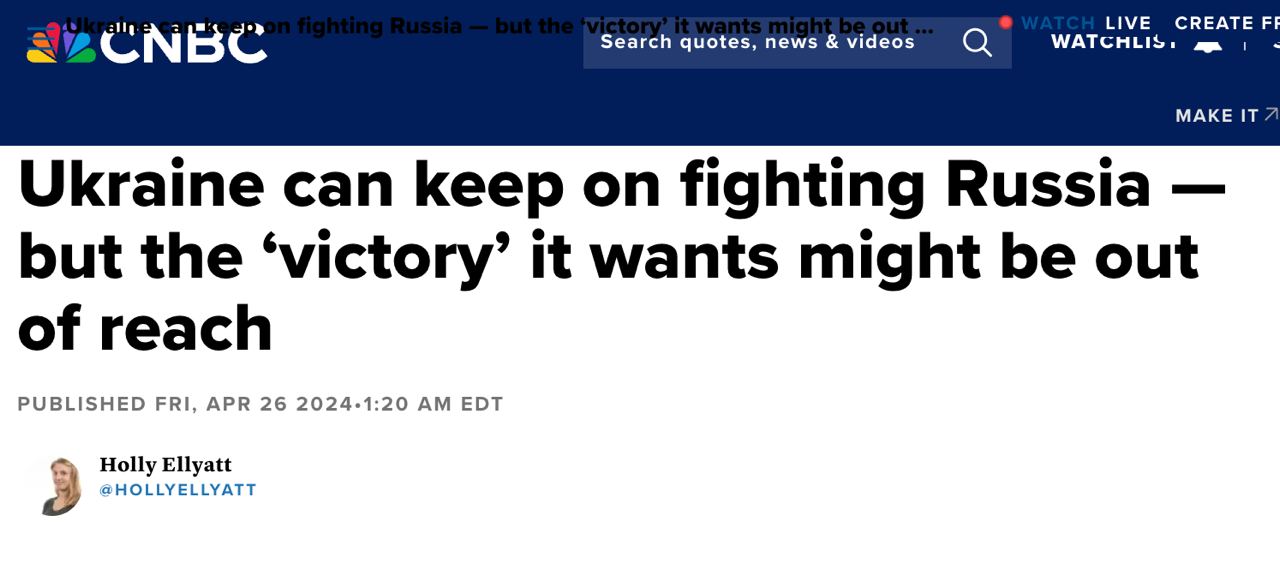 12.48 Украина может продолжать воевать с Россией, но желаемая «победа» может оказаться недостижимой".