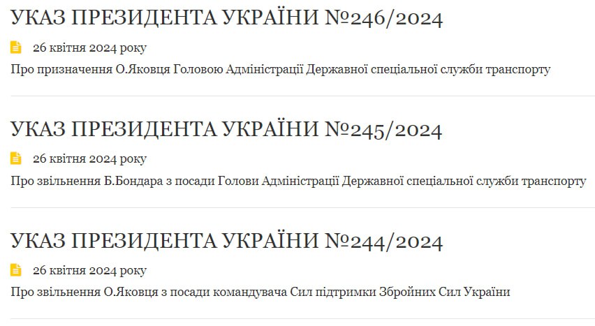 18.19 Зеленский уволил командующего Сил поддержки ВСУ Александра Яковца и назначил главой администрации Государственной спецслужбы транспорта.
