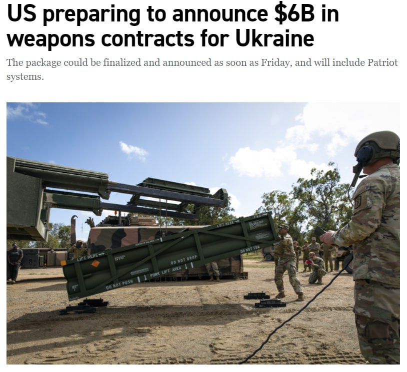 США готовят в рамках программы USAI (производство оружия для Украины) пакет помощи на общую сумму шесть миллиардов долларов.
