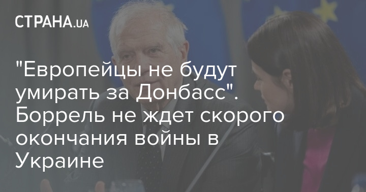 "Мы параллельно должны продолжать поддерживать народ Украины. Европейцы не будут умирать за Донбасс, но мы можем помочь украинцам не умирать за Донбасс еще дольше", - добавил Боррель.