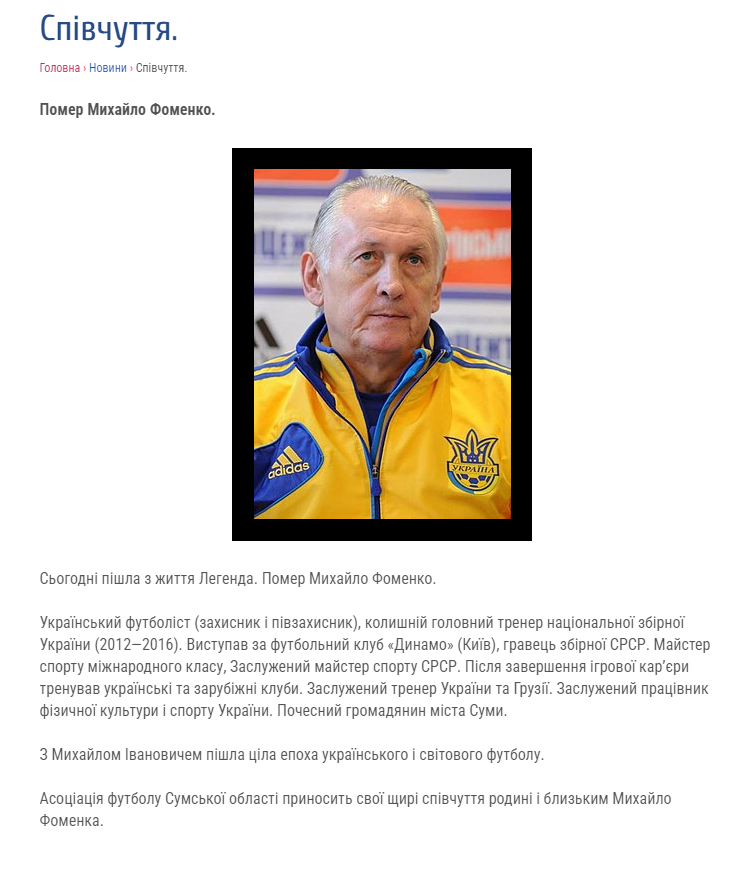 Умер экс-тренер сборной Украины Михаил Фоменко. Фото: телеграм