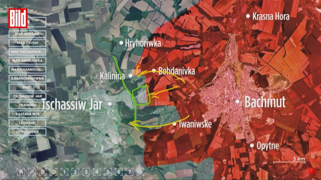 16:51 Армия РФ продвинулись к югу от Часова Яра, сообщает военный аналитик Bild Юлиан Репке.