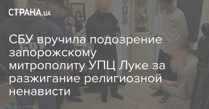 Служба безопасности Украины официально подтвердила обыски у запорожского митрополита УПЦ Луки. Ему вручили подозрение в "разжигании религиозной ненависти".