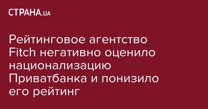 Рейтинговое агентство Fitch негативно оценило национализацию Приватбанка и понизило его рейтинг