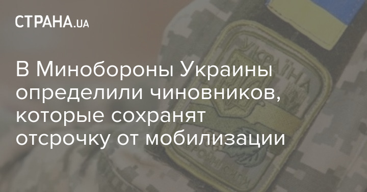 В Минобороны Украины определили чиновников, которые сохранят отсрочку от мобилизации