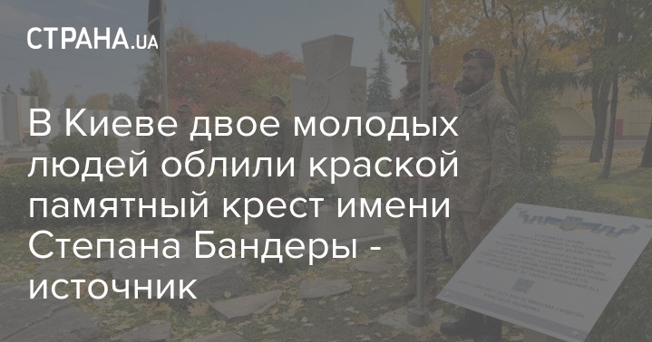В Киеве сегодня ночью двое молодых людей облили краской памятный крест имени Степана Бандеры, что расположен в Подольском районе столицы.