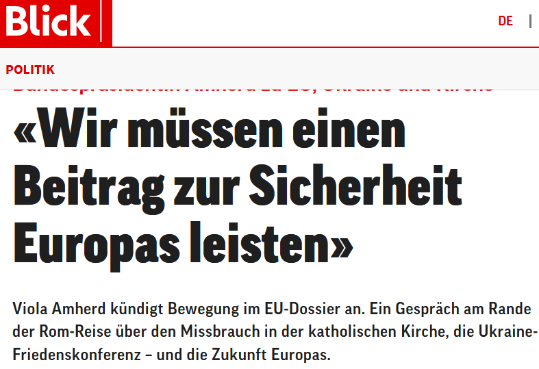 Об этом заявила президент Швейцарии Виола Амерд в интервью местной газете Blick, отвечая на соответствующий вопрос.