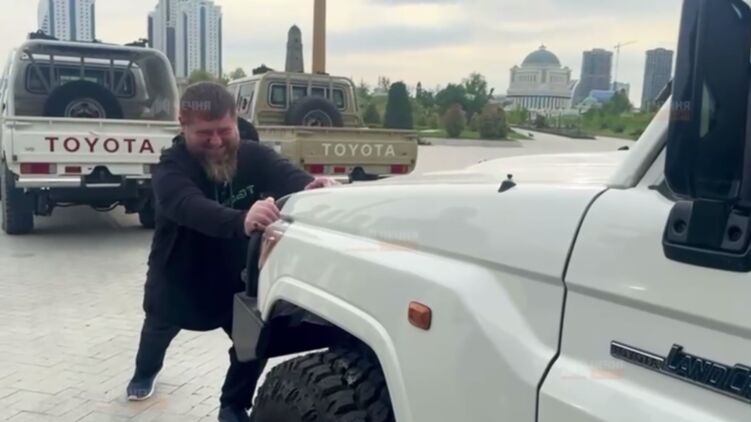 В сети появились кадры с главой Чечни Рамзаном Кадыровым, толкающим внедорожник.