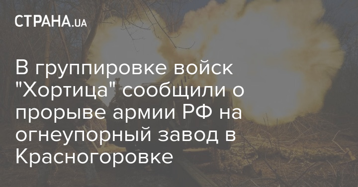 Спикер оперативно-стратегической группировки войск "Хортица", подполковник Назар Волошин подтвердил, что россияне прорвались на территорию огнеупорного завода в Красногоровке, но сказал, что они там заблокированы ВСУ.